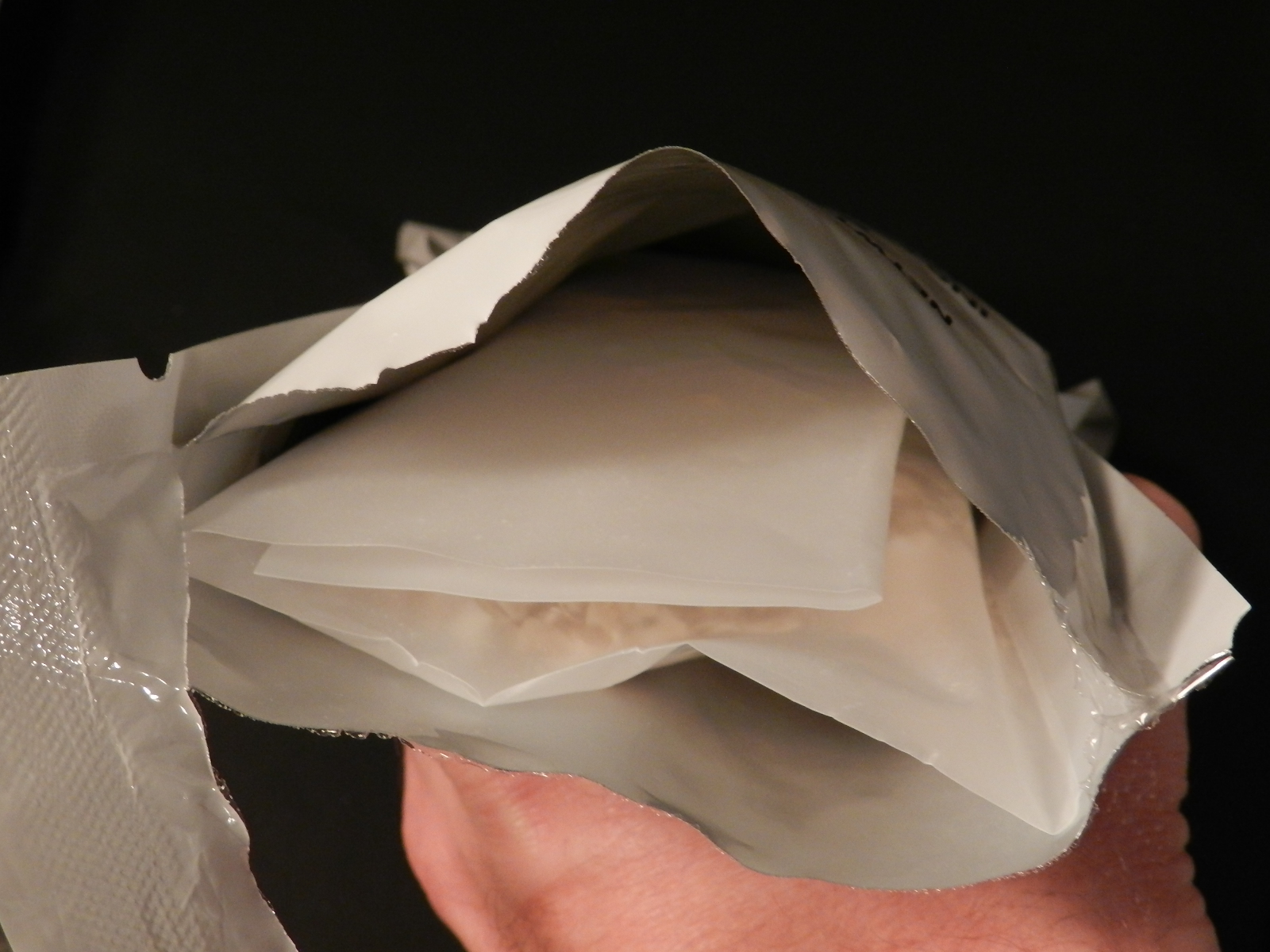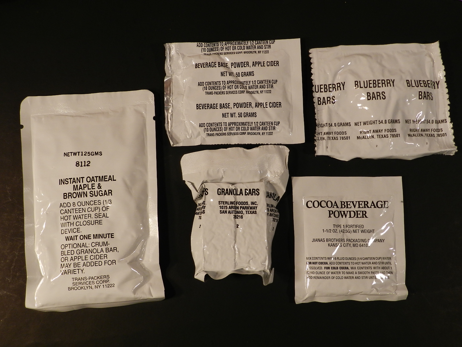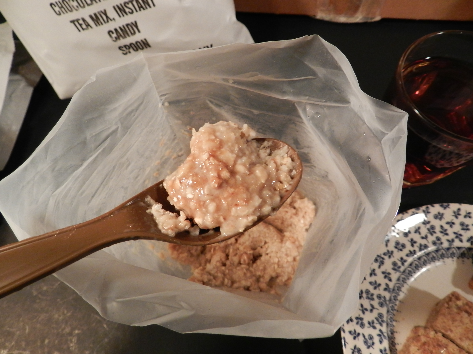 Packages were sealed tight and the brownie and cookie smelled just as I remember them. The brownie's flavor wasn't off or bad, just too chocolaty for my liking. The oatmeal cookie was great, nice and crunchy too. No excess oil and shine on either of the rations. I didn't get a picture of the oatmeal cookie - I have more to open up so next I'll get better pictures.