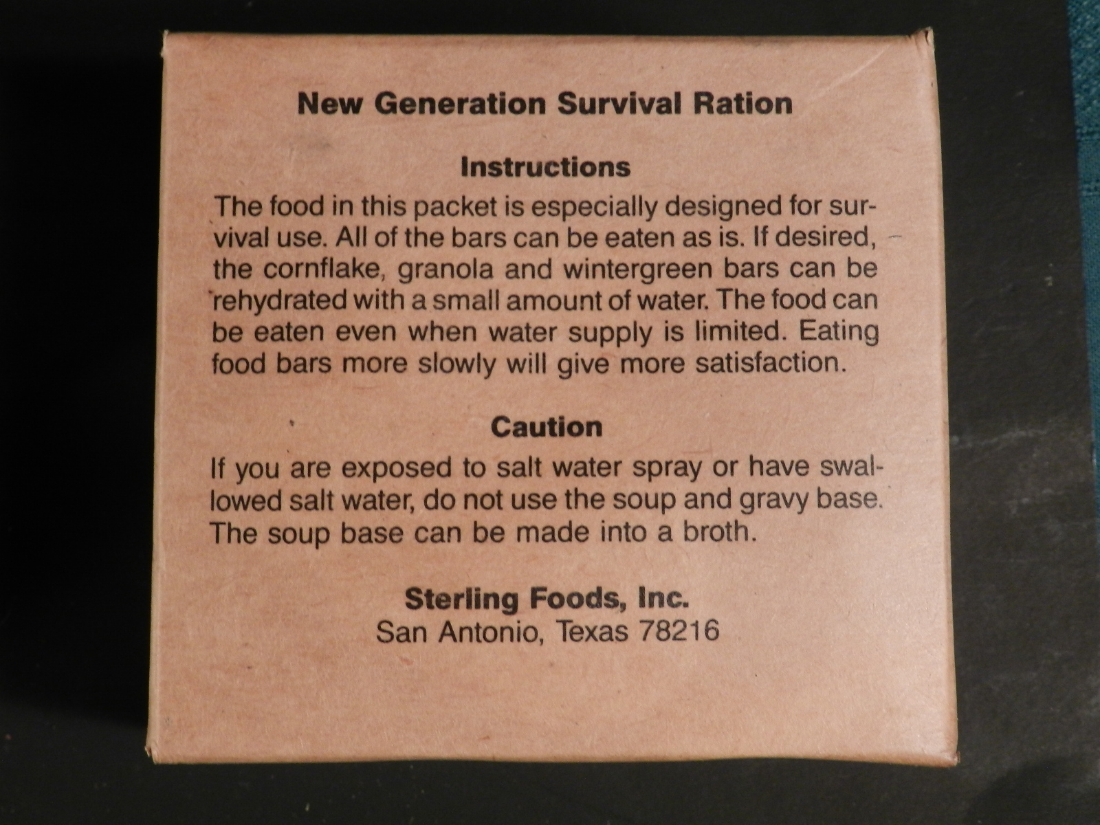 Here is what I suspect is an unusual prototype to the modern Food Packet, Survival, General Purpose. Those FPSGP's were originally produced by Cincinnati Association For The Blind around the late 70's, then they changed their company name to The Oklahoma League For The Blind in 1981, continued with that title until 2011 and are now simply called Newview - they are in the same location too and produce a fantastic Survival Ration.