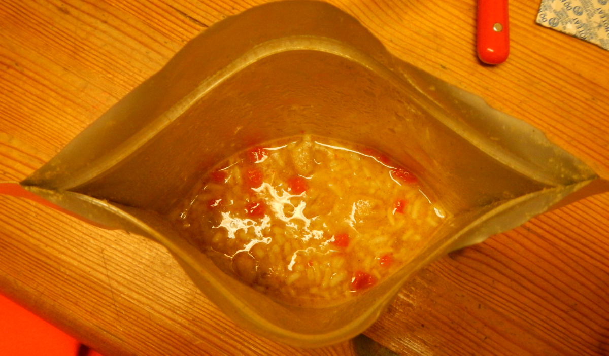 After reconstitution of ~15min, I got a nice smelling dish. The rice was like fresh cooked, neither solid nor slushy.
