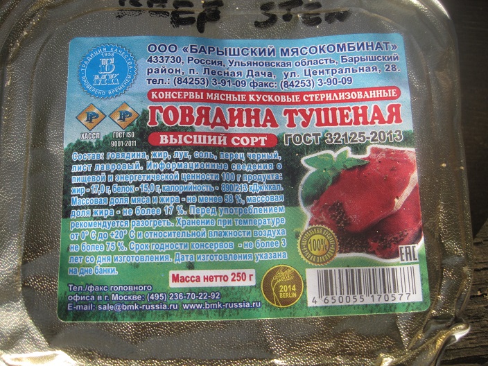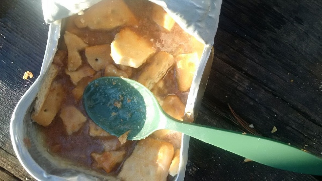 My son suggested we mix them together and share. This was the correct decision. It was delicious. I was refreshing to eat beef without a bunch of spices, just in it's own juice or brine. After we finished we still had a tin of liquid beef juice so the Russian Army hard loaves were broken up and eaten with the grease.