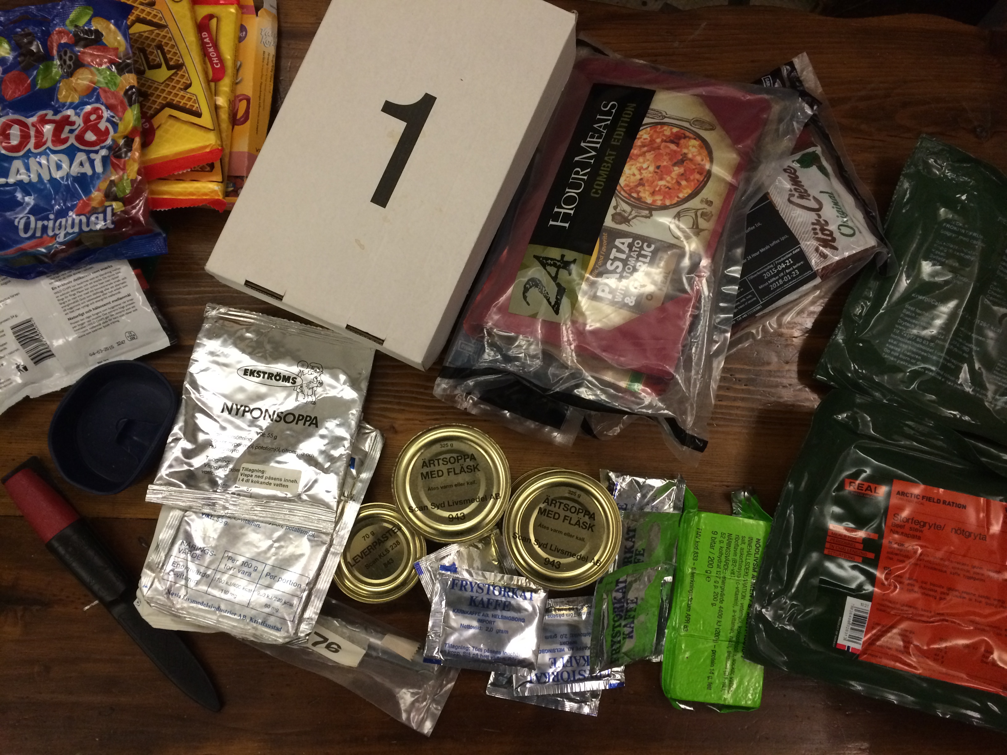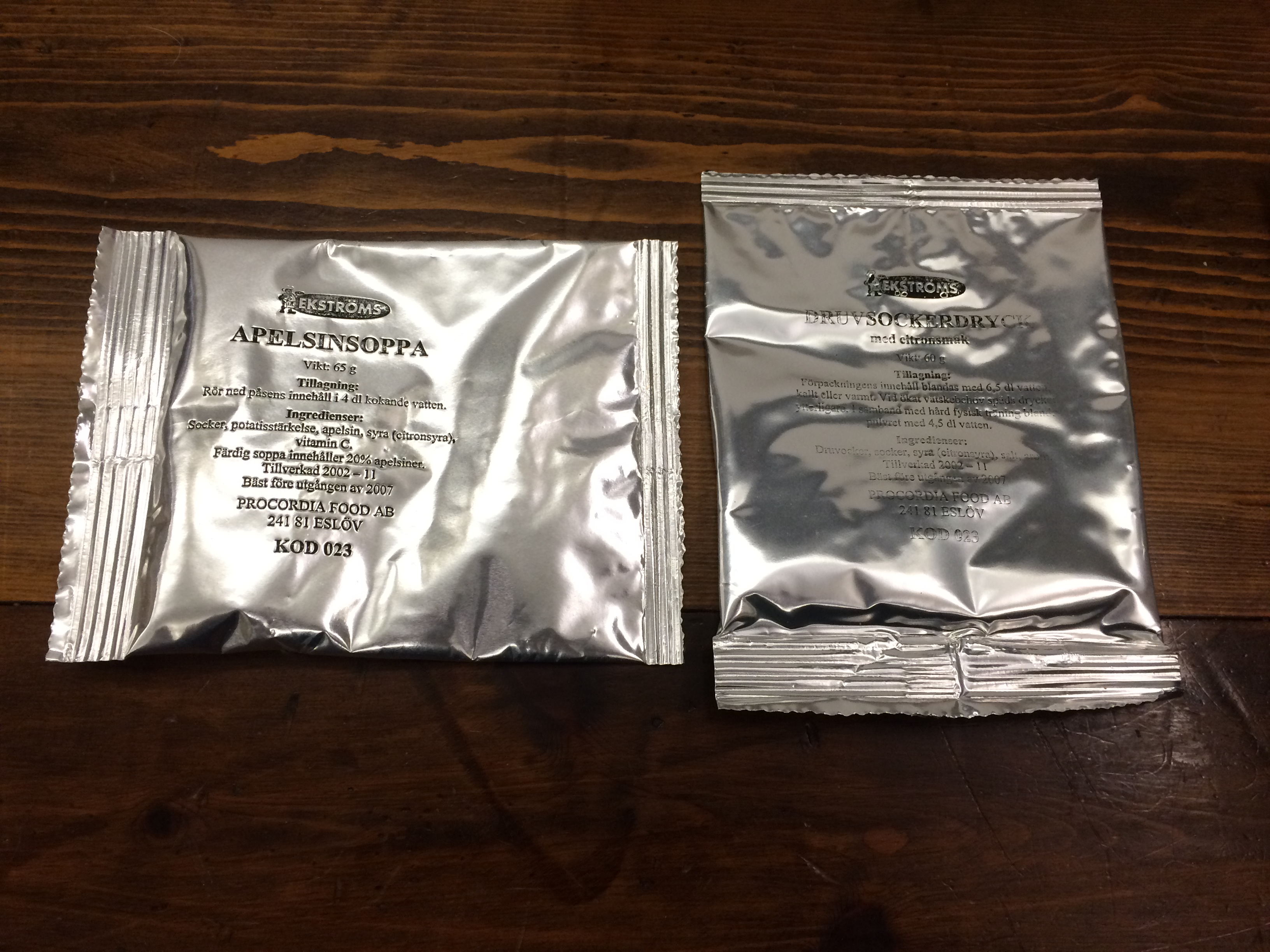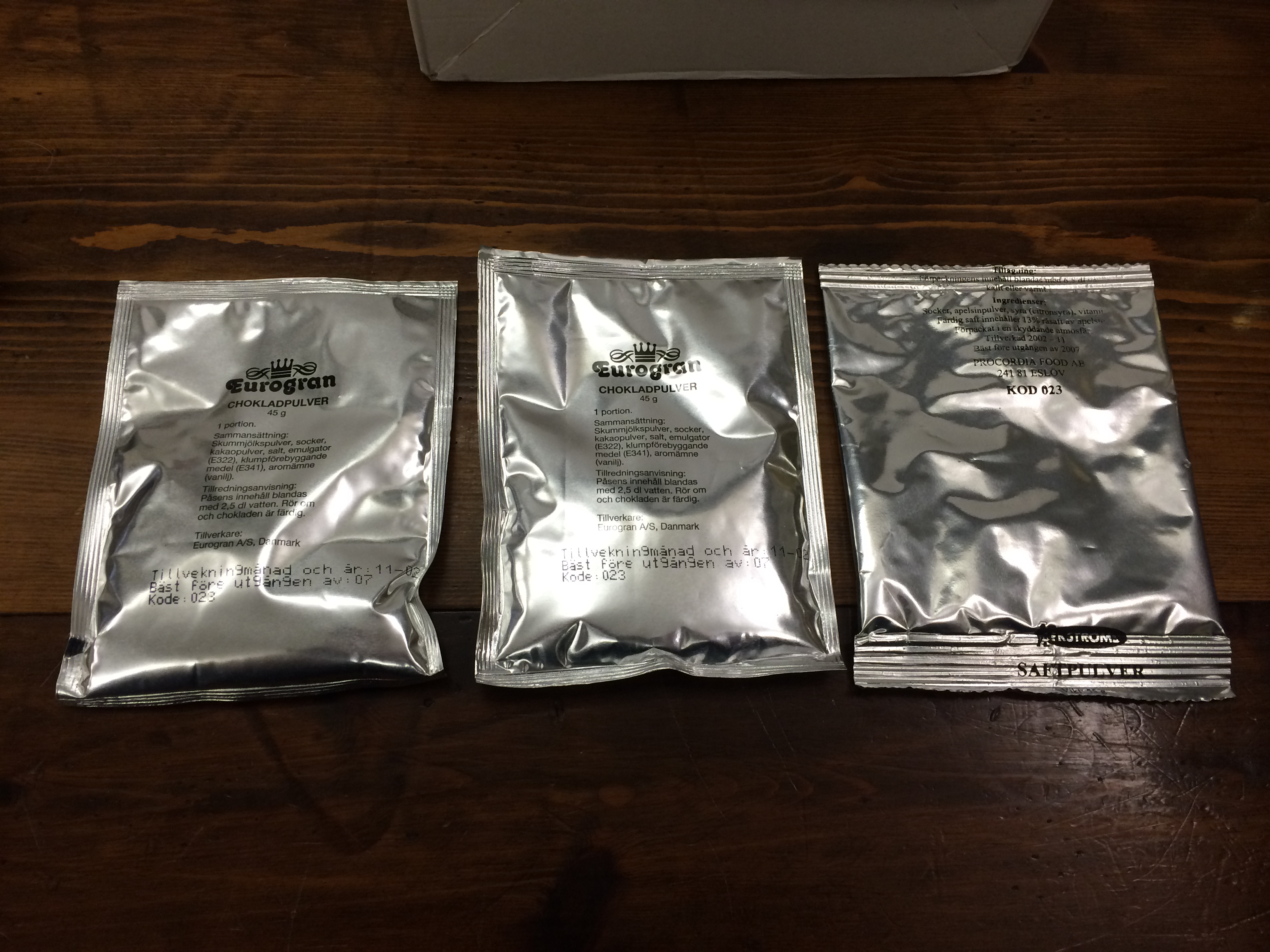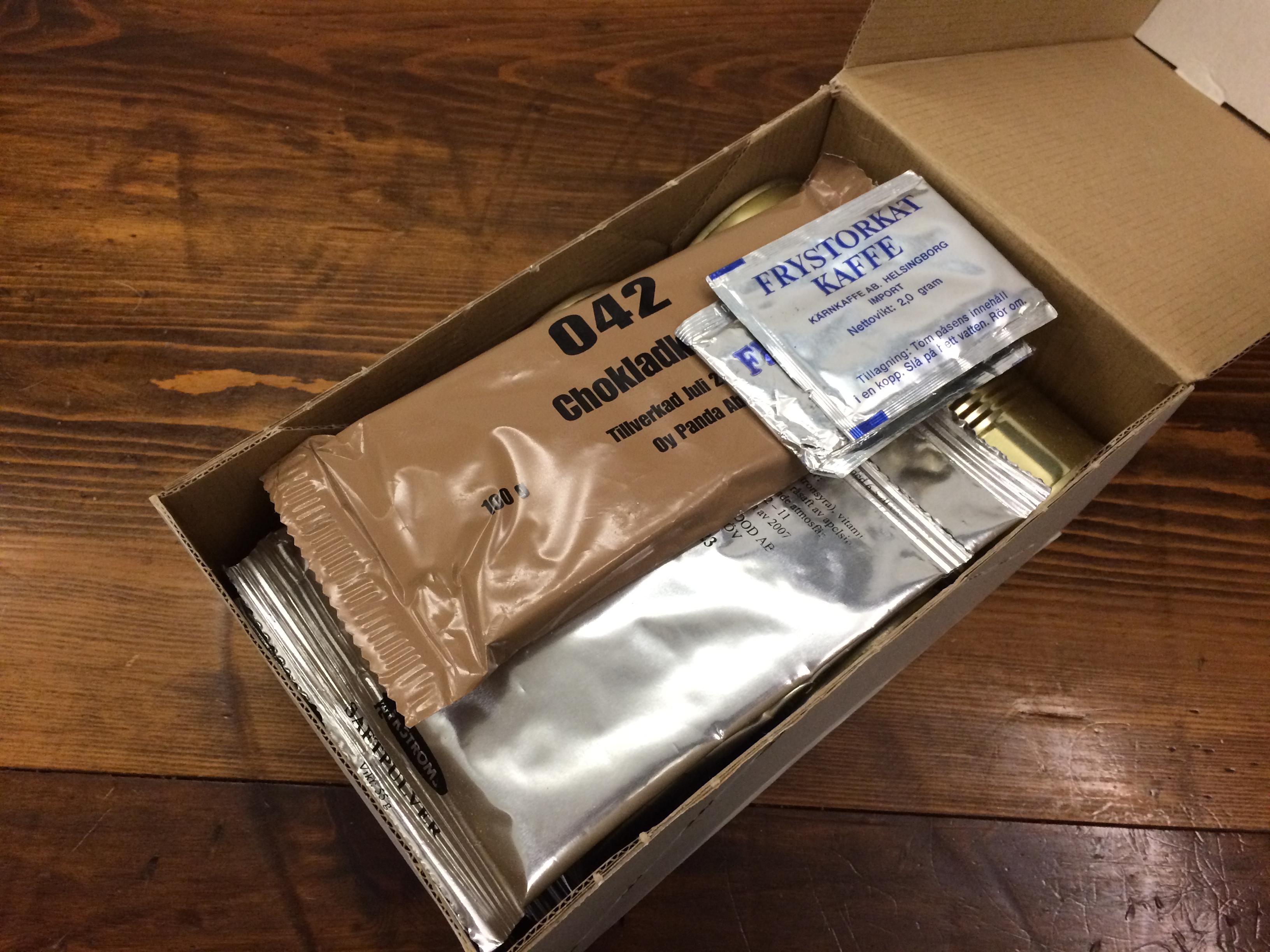 I got this sent to me by a viewer named Sven-Inge that served with the Infantry Swedish Armed Forces back in the 80's. I actually got a bit more stuff than what I show and sent it on to Steve to try as well. I don't really know too much about this ration as I've not found anything about on the internet. Sven-Inge said it was from 2002. I saw Housil posting something similar canned items from Norway. I know both Sweden and Norway used the FR-2000 or three sectioned plastic bag 24 hour rations during this period. It sort of reminds me of the Japanese Defense Force having both Canned and retort packaged Type I & Type II rations. I won't be posting the actual review on YT till May 25th, 2016 so a little mystery to my actual opinions on the ration. Until then, here's a few pics in the meantime.