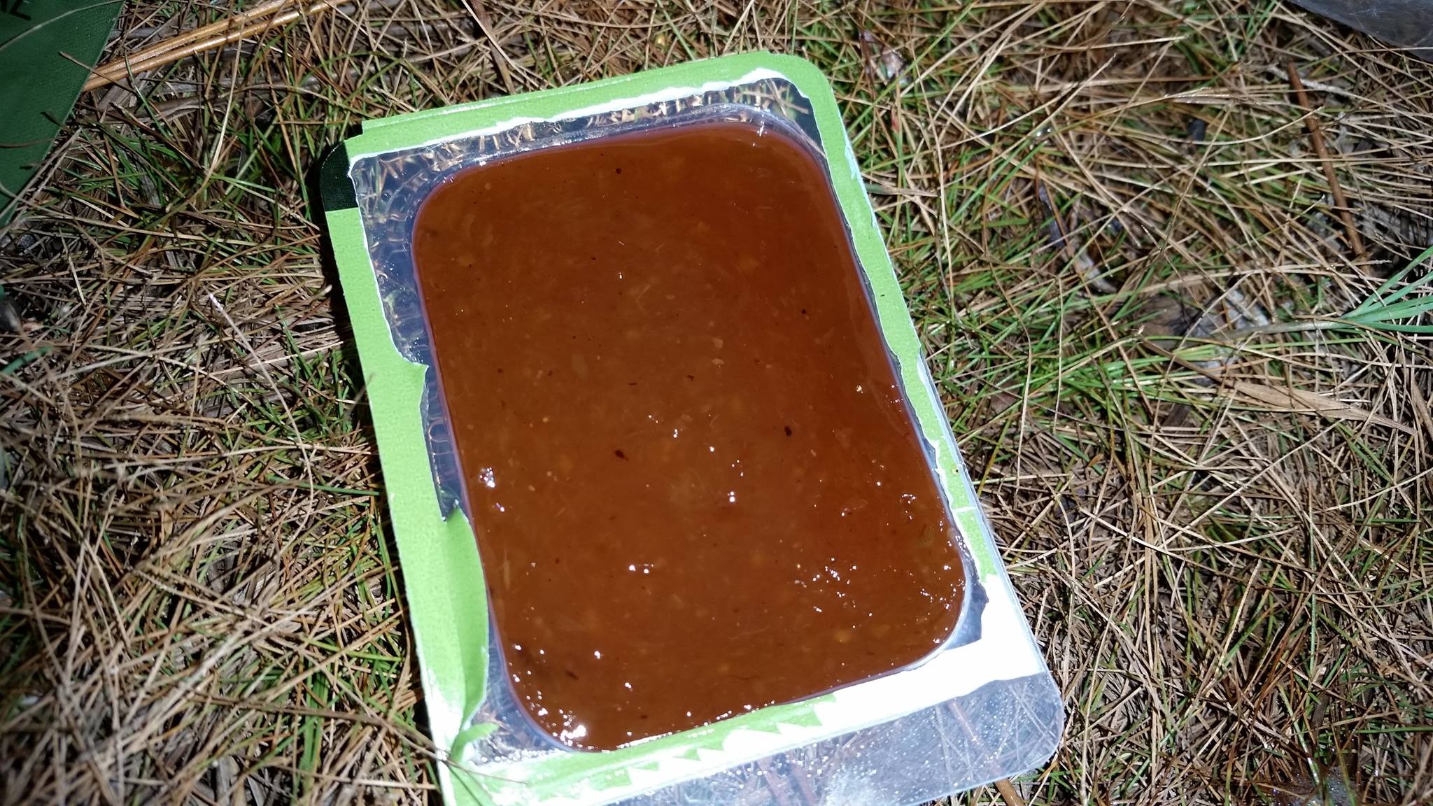 There is that jam - what the heck is this stuff? Please someone help me out here - it tasted like Agave Fruit or something! I really liked it - and I am glad I keep a MRE spoon in my vest because these Spanish Rations only have a spoon in the Breakfast meal if I remember correctly.