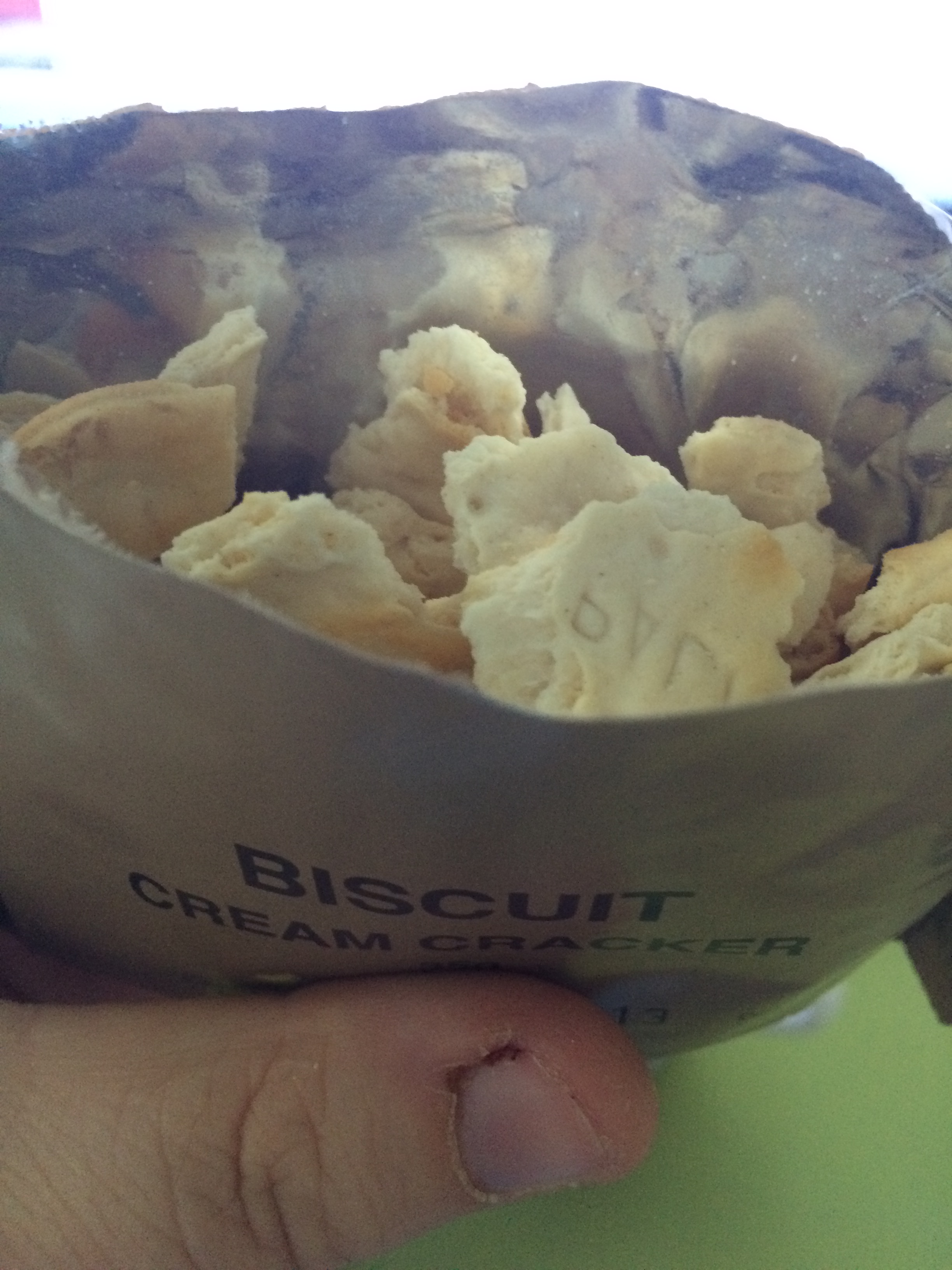 For Breakfast i chose a light noodle soup, some instant coffee and condensed milk to go with the coffee, also some crackers, because i thought that cream crackers might be sweet, and that would do great with coffee in my opinion.