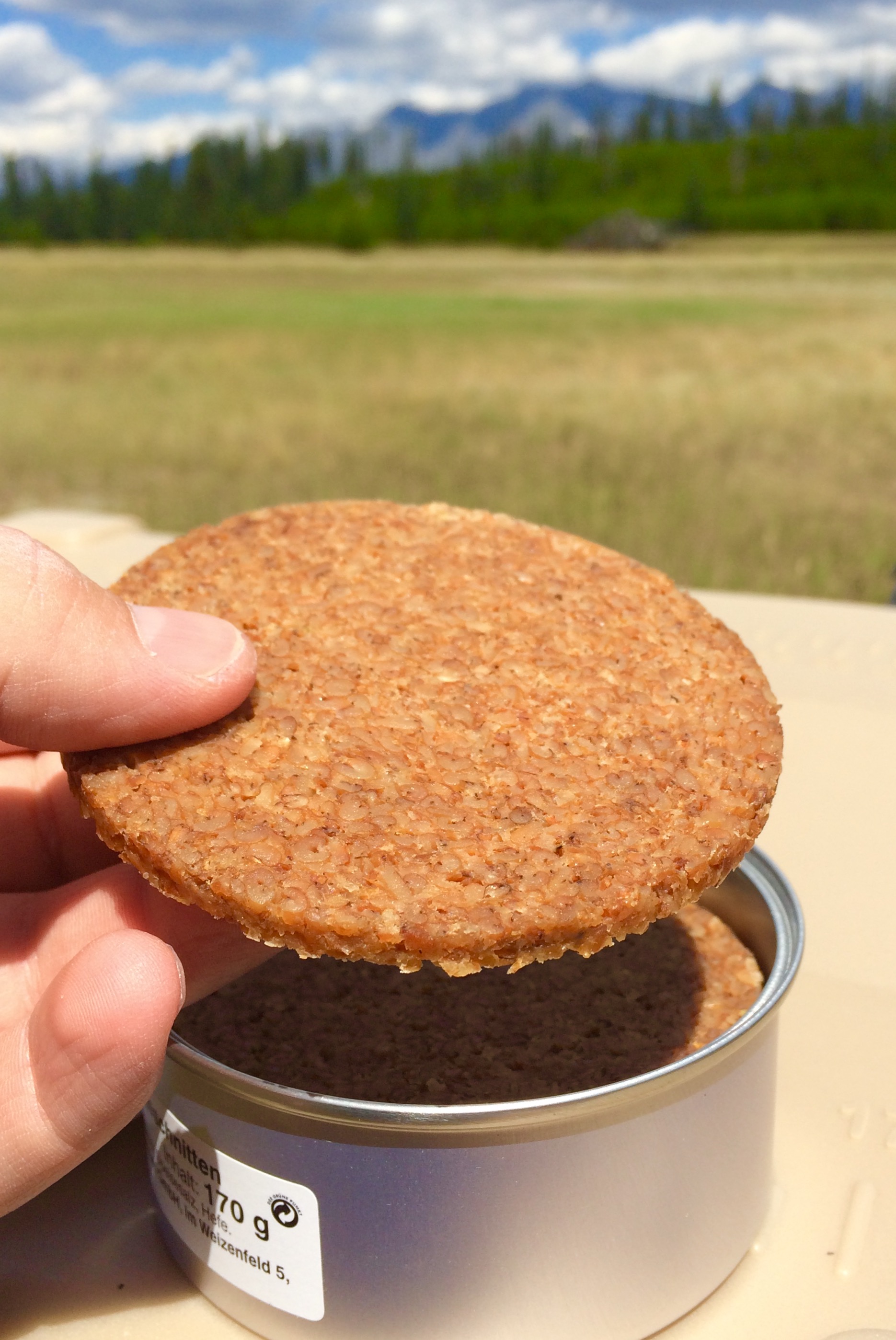 The canned bread is superb. It's moist, not crumbly, has lots of whole grains, and has a very complex taste to it. It is pre-sliced, and they give you a generous amount, especially given that they also give you keks as well. The spread was very good and went perfectly with the bread. This was my first experience with this German spread, and I'm looking forward to the other packet. It's hard to describe the taste. It wasn't salty like butter, nor was it like a cheese spread. If I had to pick something that I'm familiar with that it had some semblance with it would be cream cheese. Maybe that's what it is, I'm not sure, but I know I liked it!