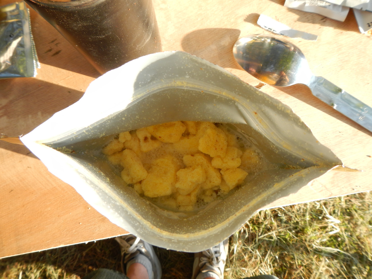 Dinner was a freeze dried entree "chicken in curry cream sauce" out of a (new) EPa #10