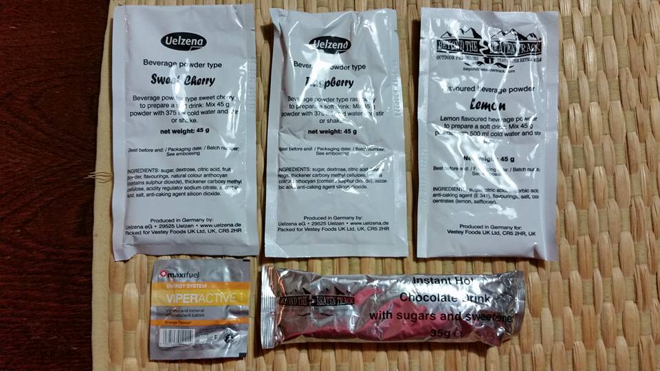 Next up we have the vast array of snacks and drinks and whatnot. There certainly seems to be a good variety of drinks here. I assume the "Viperactive" tablet is some sort of vitamin/dextrose tablet.... we shall see. All drinks aside from the vitamin tablet are actually German in origin..... Das ist sehr gut? Ja oder nein? Haha