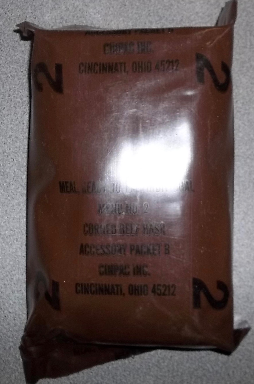 I found a case of 1991 MREs, Menus 1-12, in my dad's house and he let me have them. I decided to try the Corned Beef Hash, menu 2, first. Surprisingly, everything was still good except the Milk Caramels. They had a foul/chemical odor to them, and based on the ingredients, I thought they had a real milk base/ingredient that had gone bad over the last 25 years. I couldn't believe the Corned Beef Hash was still good. As I hoped, they must have been stored inside/climate controlled for all these years. The manufacture date on the main entree was the 134th day of 1991. The real reason I wanted to try this menu was Oatmeal Cookie bar, and it did not disappoint. However, my favorite item was the freeze dried fruit/Pears. Also, the hot cocoa was average, but I put the instant coffee, sugar and cream in and then it was magnificent. Even the lemon Lime Beverage Base Powder was still good and tasted just like powered Gatorade. All in all, I made a good choice. While the entree was still good, it wasn't something that I really enjoyed due to the flavor, which was a little salty and tasted a little like the bag. The Tabasco helped a bit.