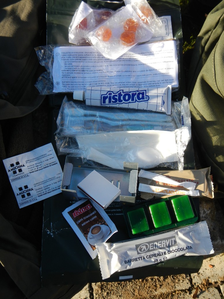 Esbit cooker, candy, a tube of condensed sweet milk, coffee etc. but nothing to eat for breakfast...