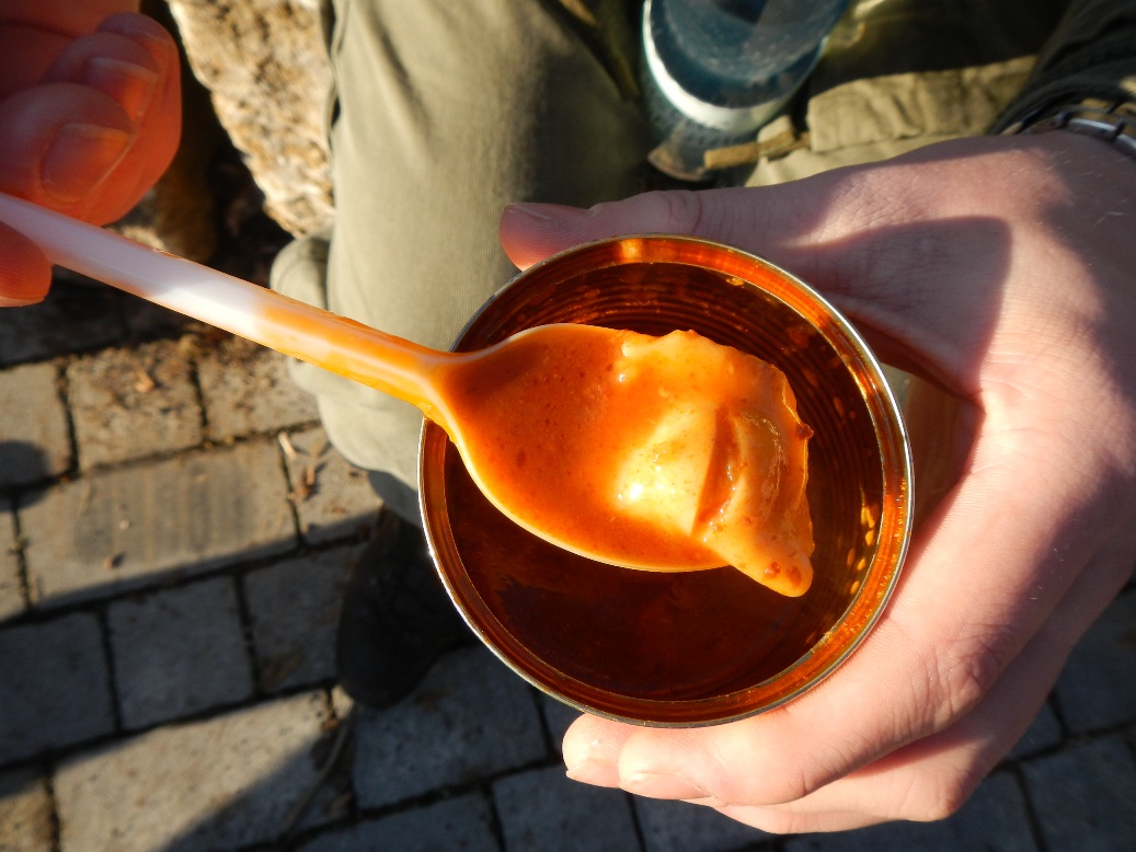 A snack (?), canned pork meat with gelatin (very yummi!!!)