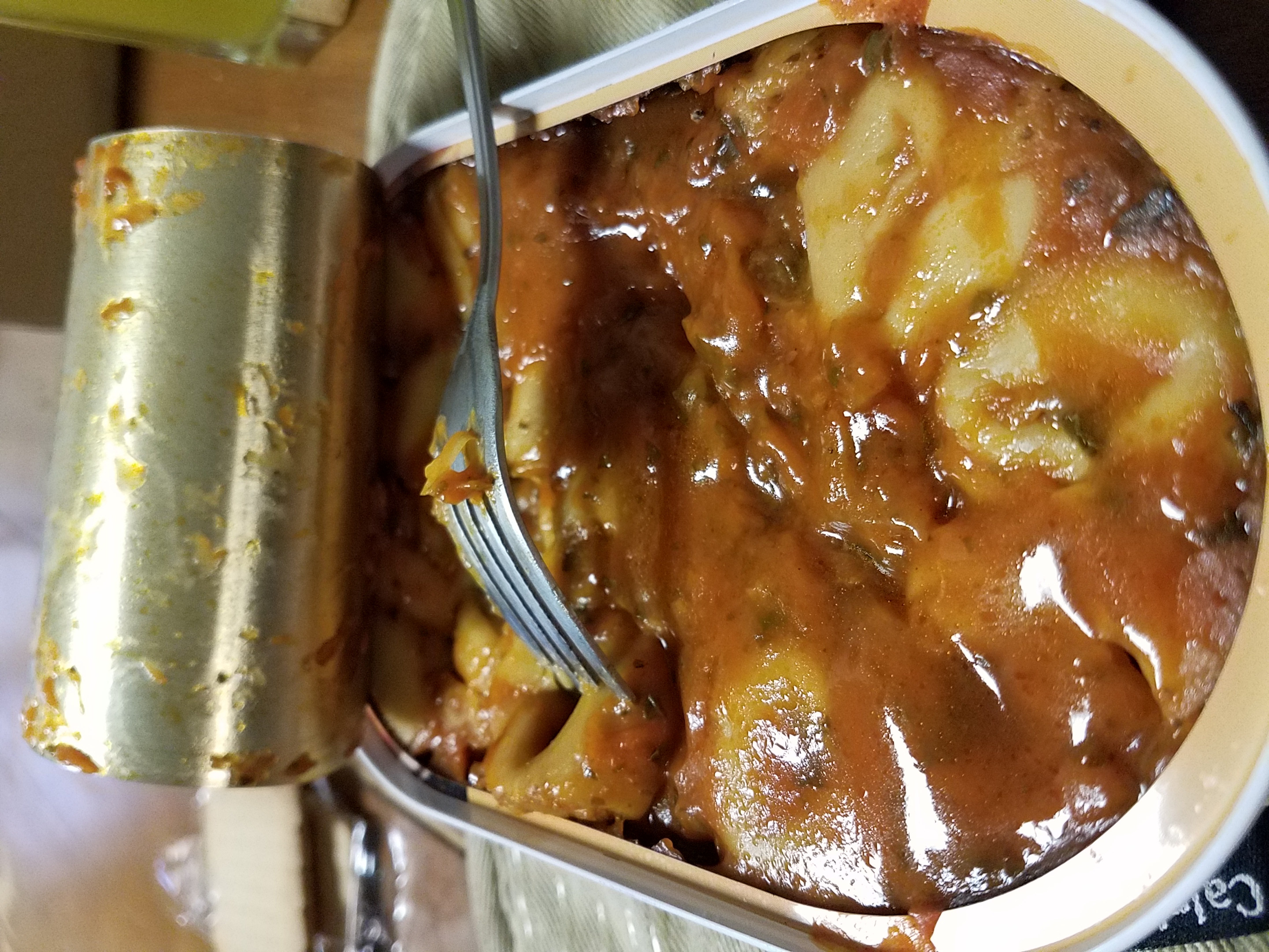 So, a bit of an update, I bought another RCIR Menu 5 that expires in 2019 and there were some differences in it. I truly enjoyed the differences thought, the biggest thing being the strawberry jam, that was delicious really, very strong and enjoyable flavor. The next thing that was different was a desert that translated as milk rice, it tasted and seemed like sweet milk in rice, the texture was strange because of the light sweet milk and grainy rice. A last and tasty addition to the kit was the box of biscuits. You not only get the salted and cereal, but a new addition of cocoa biscuits. You get 3 cocoa, 2 cereal, and 3 salted, and man are the cocoa are full of chocolate flavor, the strawberry jam went well on them. All in all, they were some nice surprises and I've also included a picture of the tortellini after its been cooked.