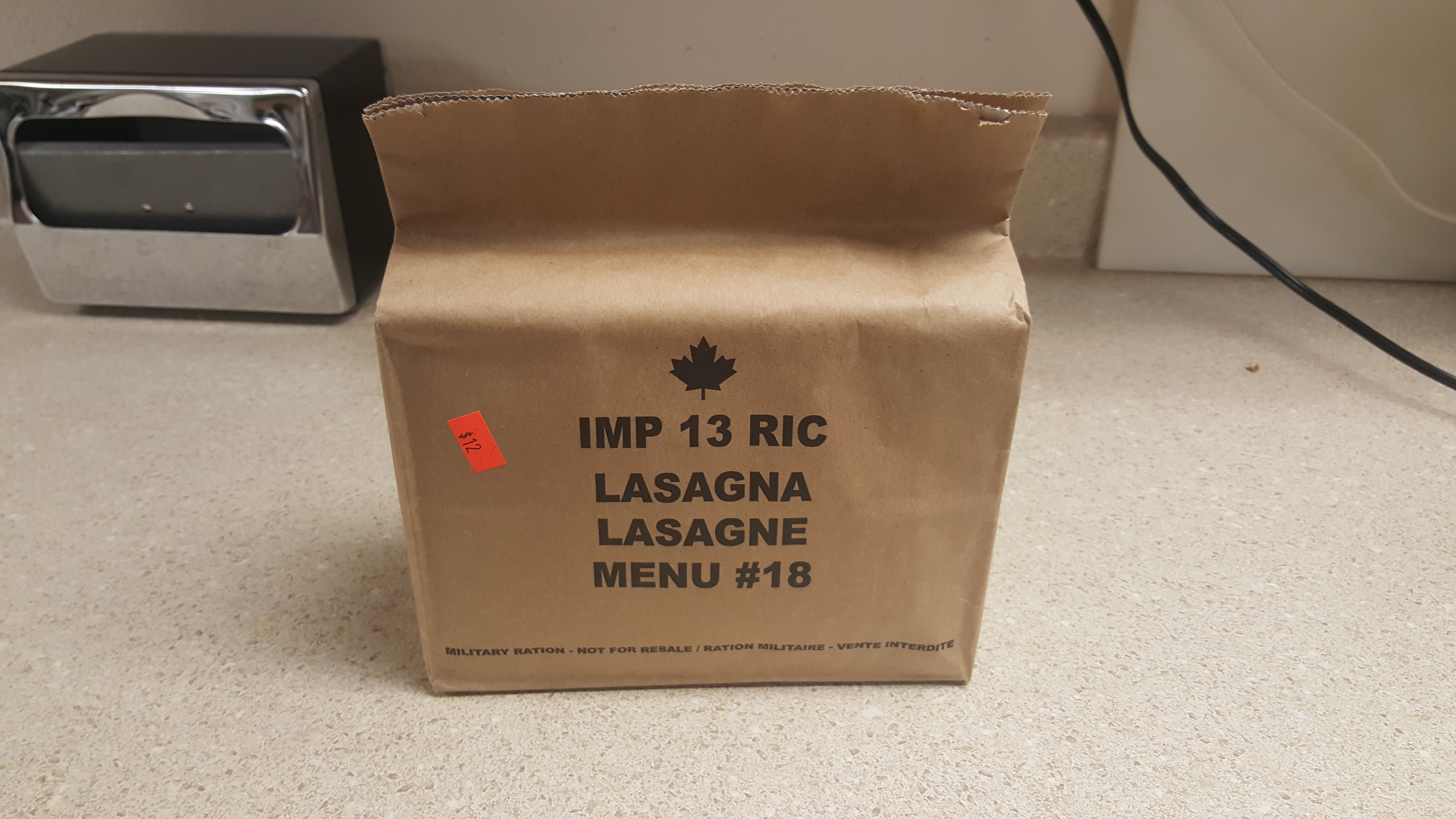 I was feeling adventurous and dug into my small collection of rations and decided to try an IMP for lunch. The one I chose is a 2013 Lasagna (thanks to forum member Westview for telling me the year). Let's break it open!