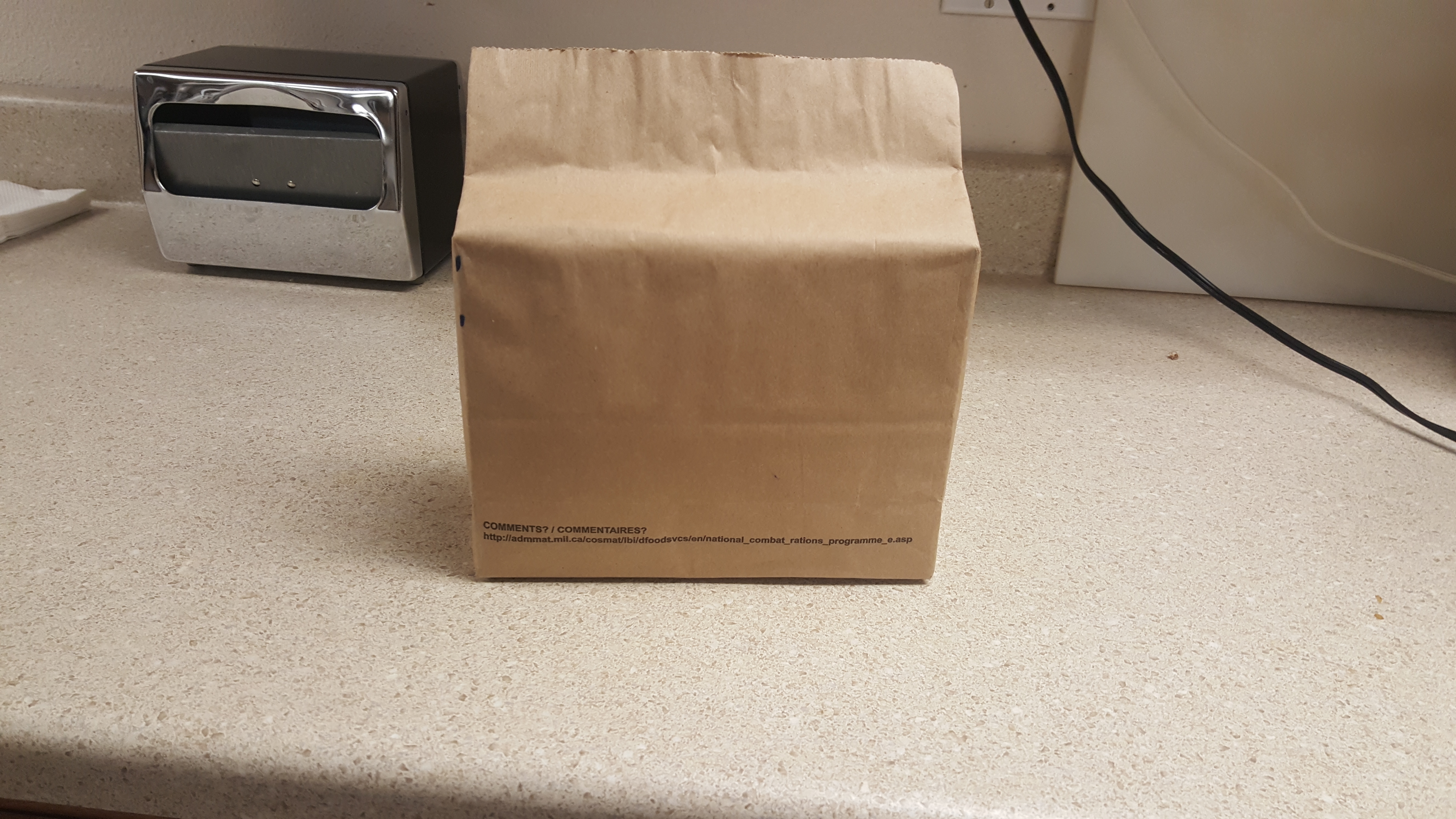 Hoo boy, where so start? The Lasagna was just okay. In my opinion, it had just a bit too much meat and not enough cheese and sauce. Everyone's taste differ, so many may like more meat and less of the cheese and sauce. The coconut desert was fantastic! The packaging said to warm it up, which I thought was interesting, but I did anyway. It had a nice balance of chocolate and coconut. What a great moral boost indeed! The bread was pretty good, I think it tastes a little better than standard US MRE wheat snack bread. The tastes were somewhat similar, but the Canadian version has a better texture and tastes a tad bit more natural. Adding some raspberry jam really brings it to life. The shortbread cookies were lacking in flavor. I hoped for a stronger shortening taste, but they were still pretty good to munch on regardless.