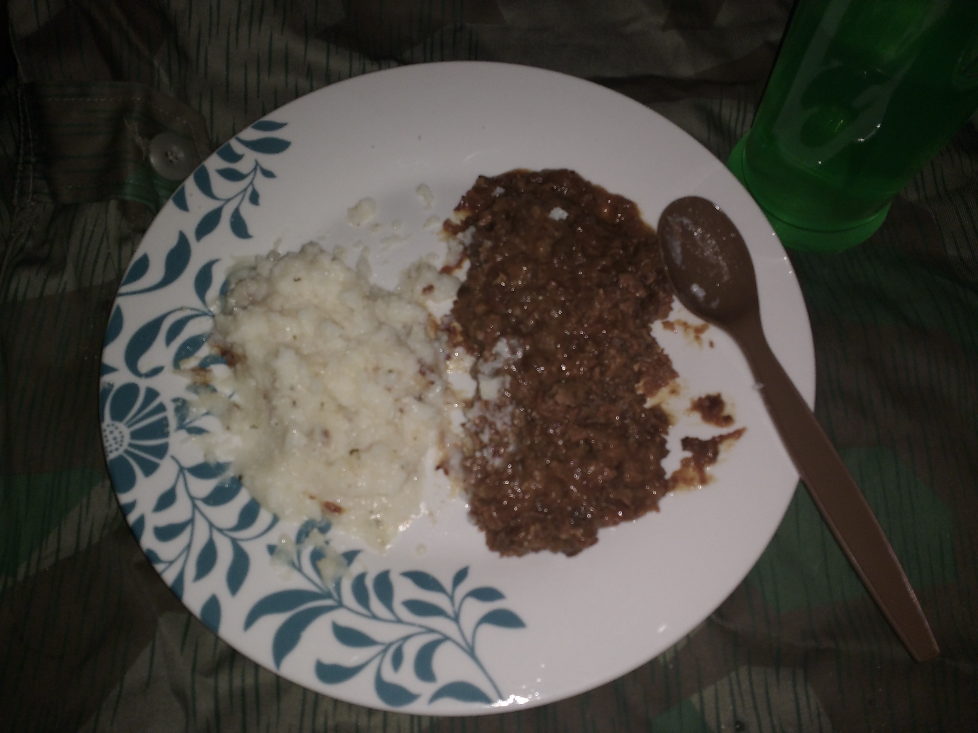 Everything plated up, that reminds me I need to get a tray. Main meal heated and plated up, the meat wasn't dry and it was good quality but I wasn't overly impressed, it tasted fine but it sort of reminded me of the meals in the old British 24 hour packs that we moved away from - Decent filling meals but simple/boring. Its basically a pouch of what I'd know in the UK as meat pie filling, just seemed lacking something even after adding salt I wasn't impressed. The mash was OK and the butter duds certainly helped. The Chernobyl juice (Lemon Lime powder) was good, I've had that before.