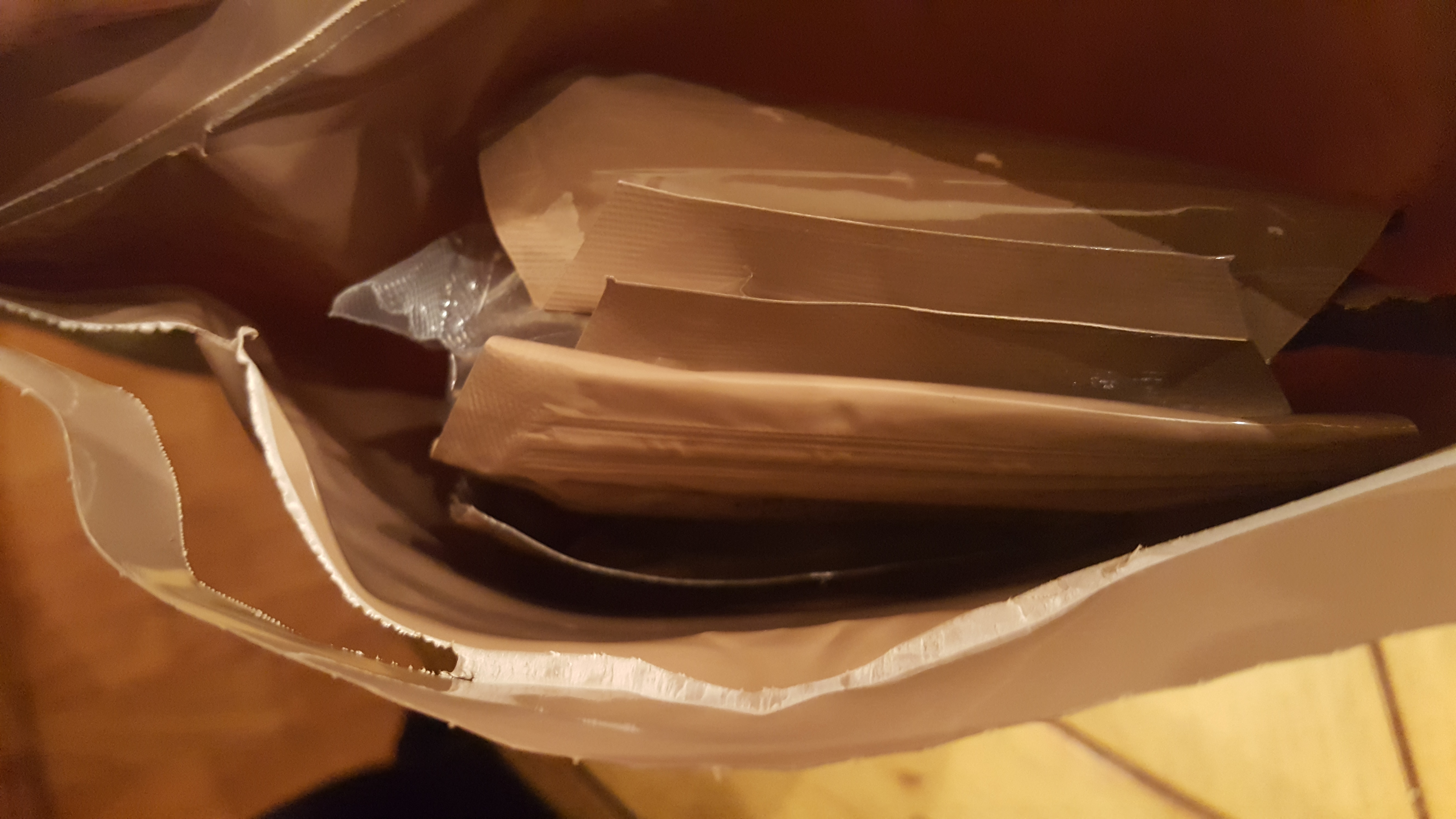 The fig bars were good, but I was surprised at how broken up they appeared since this ration is so new. The peanut butter bar is pretty good as well, it had peanuts mixed in with it, so that's one item that probably won't last for long since peanuts develop a really nasty, sour taste as they age.