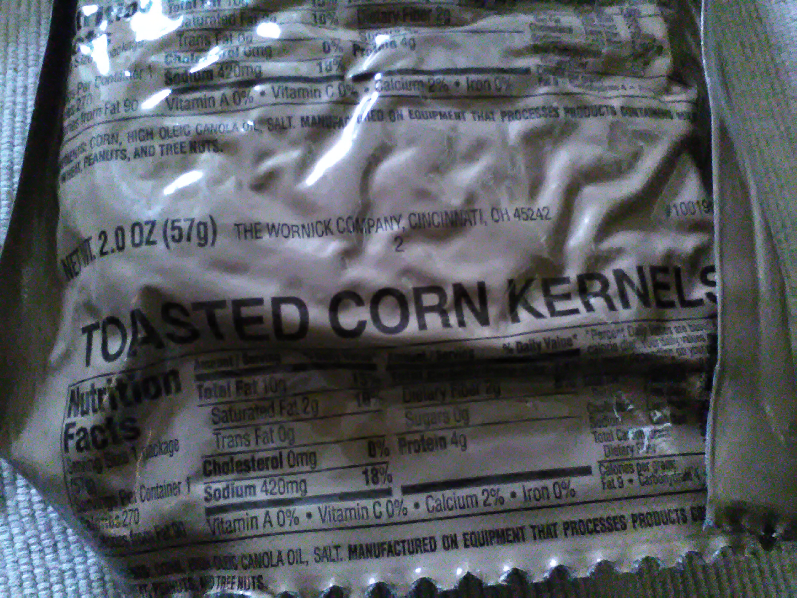 Toasted corn kernels next, I love these. I had never seen them before I started trying out US rations. I wish they were easily available here. They'd be one of my favorite snacks if they were.