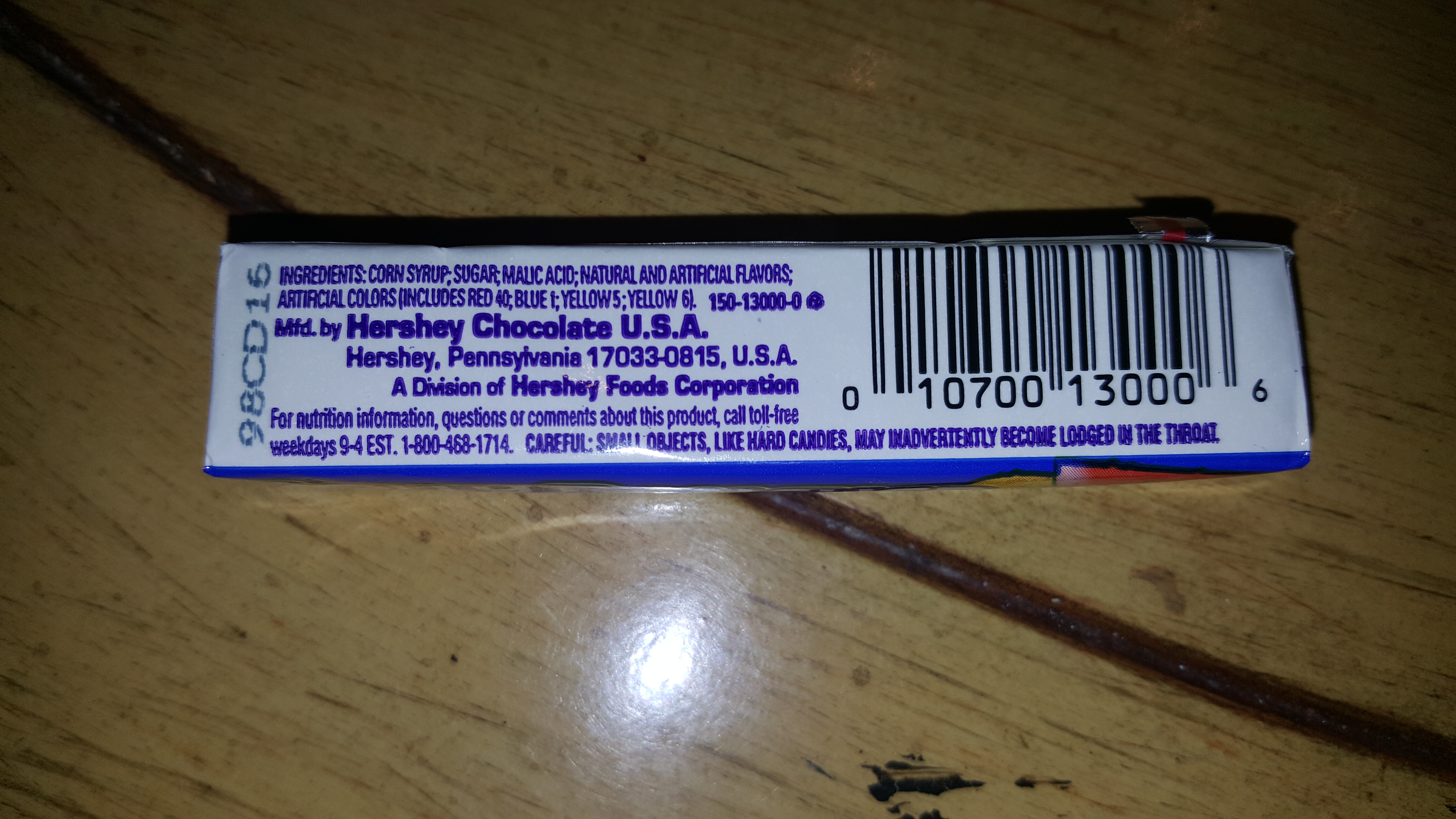 Edit: While reading the labels on the Lorna Doone cookies and Jolly Rancher candies, it was weird to not see a website listed or a mention about Twitter/Facebook. Bit of a culture shock for me lol. I do know the internet was around in 1998 and many people knew about it so I'm still a bit surprised at the fact that there's not even a website listed.