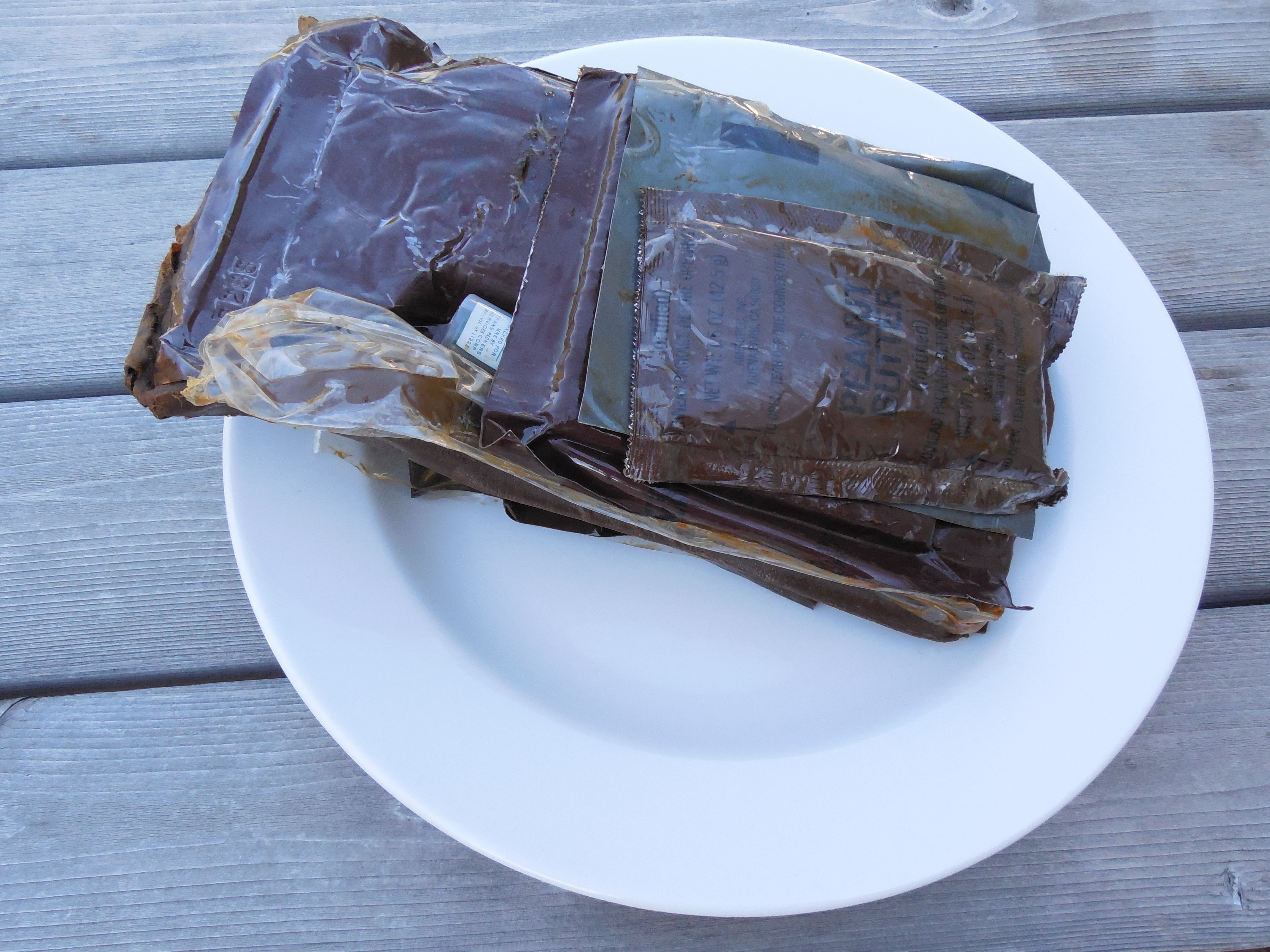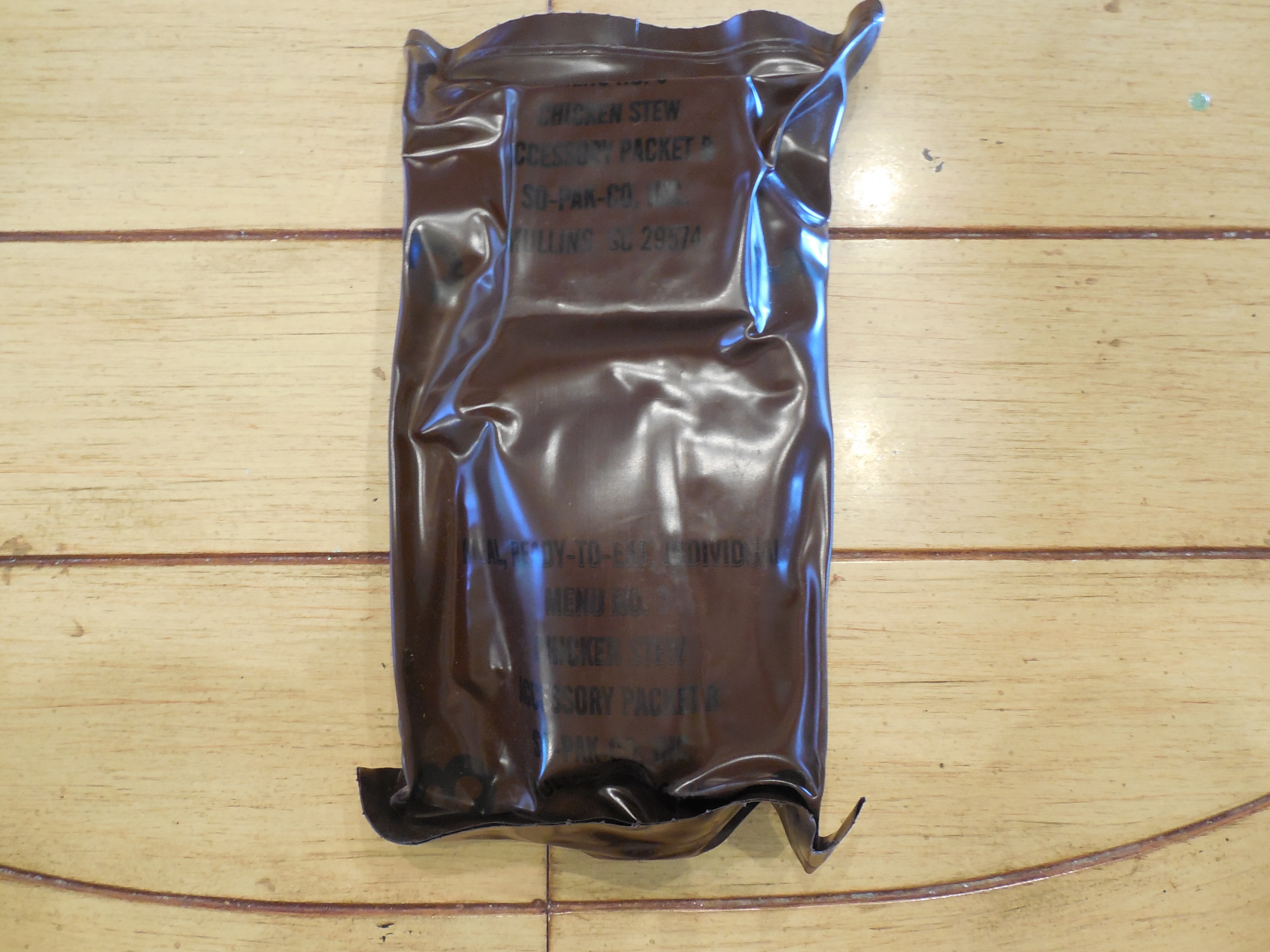 I don't profess to know exactly what happened or when it happened. Was it actually vacuum sealed in the factory and then subsequently bursted open shortly thereafter? Or is this something that took time? I really don't know but I'd hazard a guess that someone, possibly an intern over at Sopacko decided to vacuum seal this MRE and it probably opened itself up as soon as it was packed. Your wild speculation is also welcomed and encouraged.