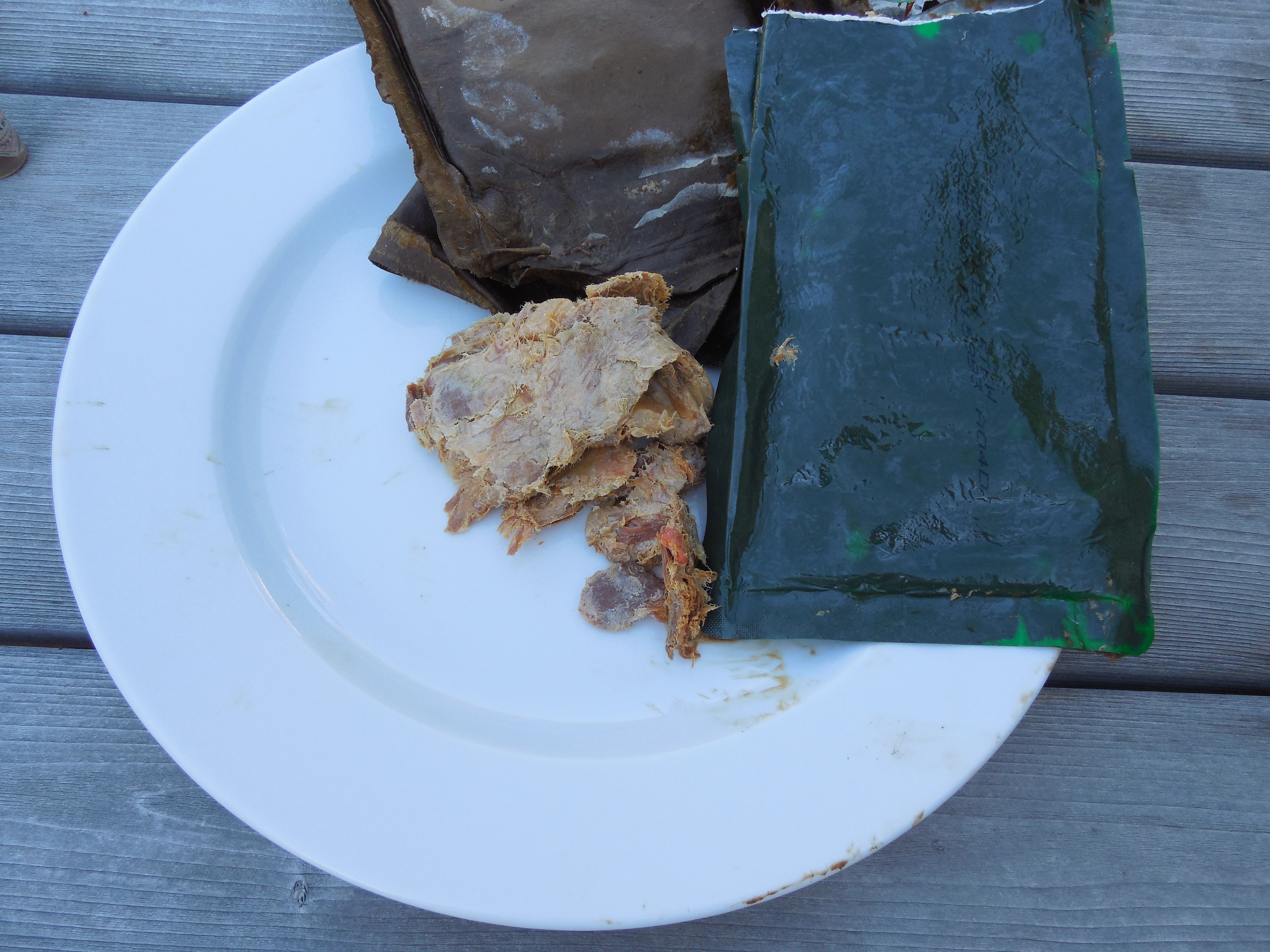 No. No, it wasn't. A smell, not much unlike a moldy dishrag was coming from the MRE. I quickly took everything outside because it was becoming pretty unbearable. I must warn you, some of the next images may not be for the faint of heart. If you're eating something I'd like to politely suggest that you revisit this post later.