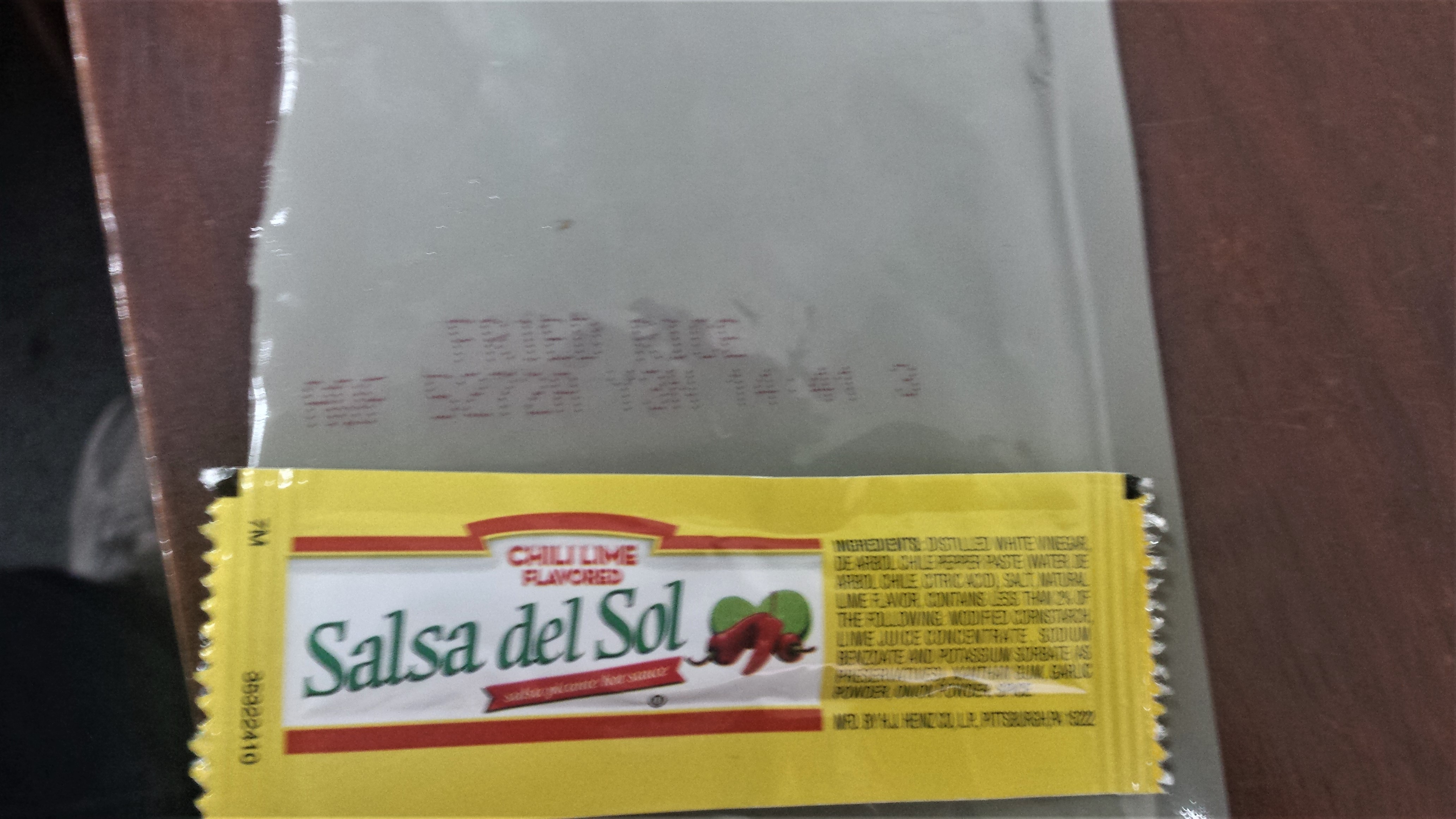 Since I'll be working in a press box tonight for a ball game and they will serve pizza, I wanted to stay light for lunch. A perfect choice from the Box turned out to be Fried Rice, Caramel Color Added. The date code on the package is a little confusing to me but perhaps 2015? A sample of the Rice found it to be a little bland, but never fear Salsa del Sol from the Grab Bag to the rescue! This combo along with a salad made for a filling, satisfying, and delicious lunch!