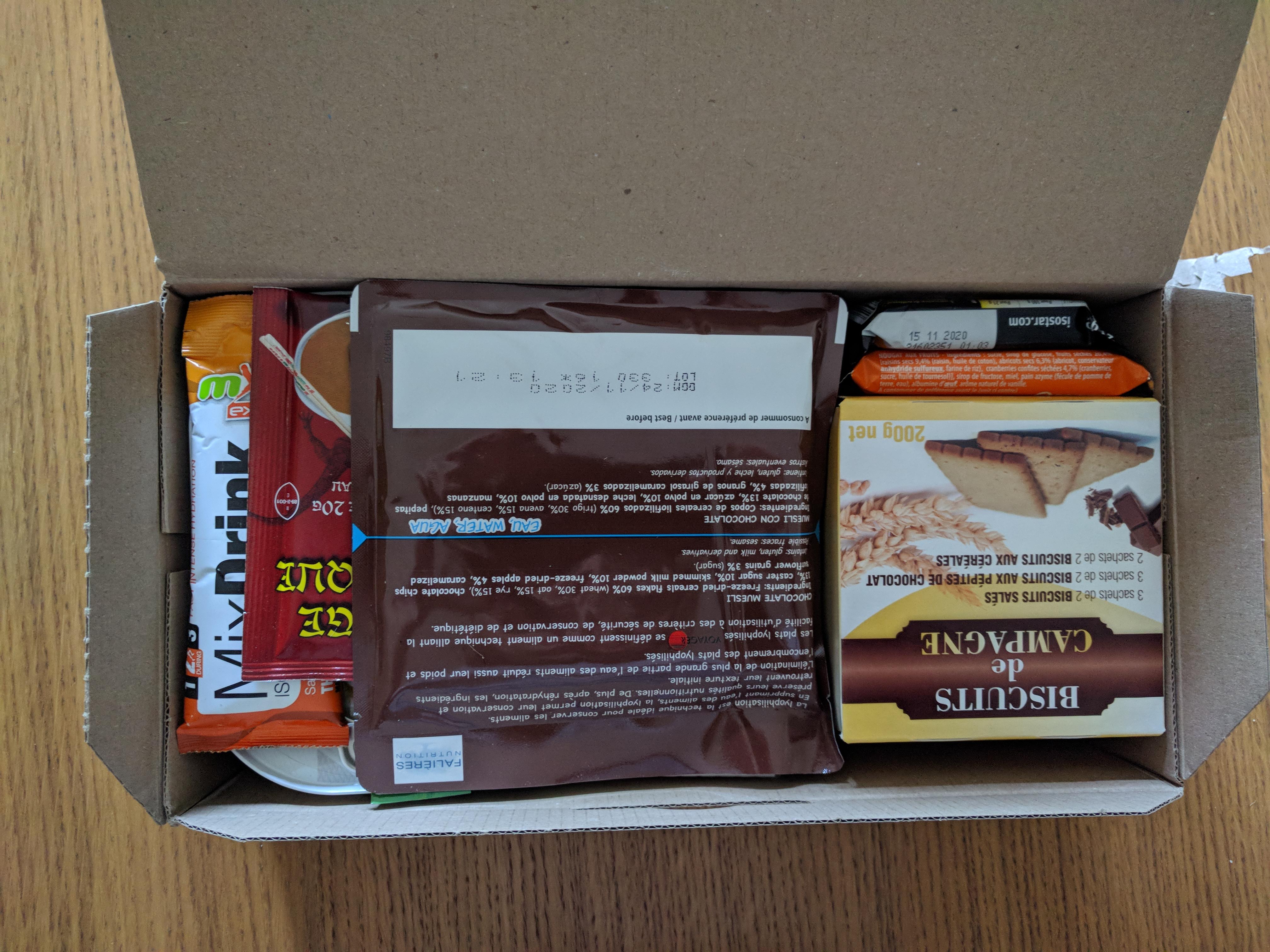 Let's start with a bunch of photos! It's a decently packed ration, plenty of cool looking stuff. Lots of little bars, which I find interesting. The full contents of the ration are: