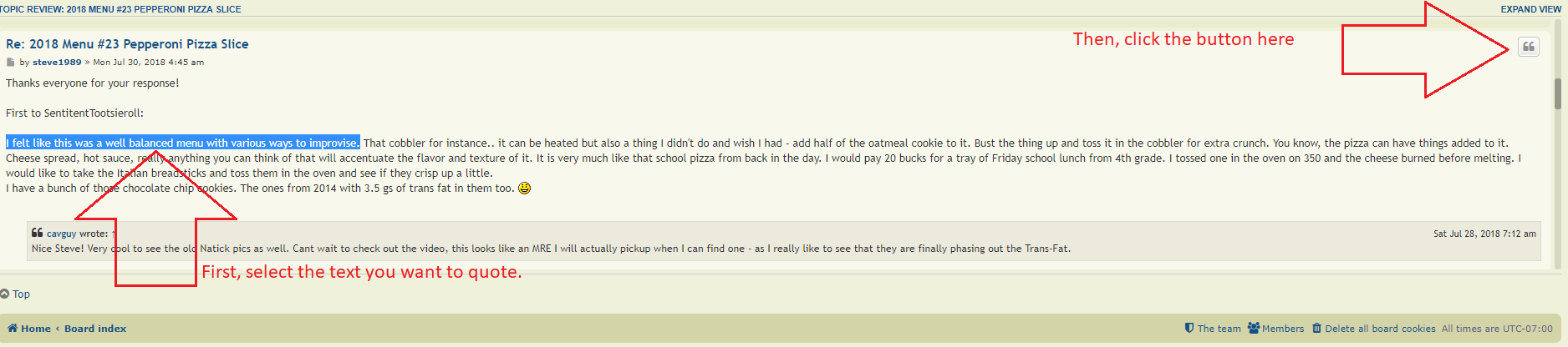 The piece of text will then show up in your reply so that your post will look nice and clean!